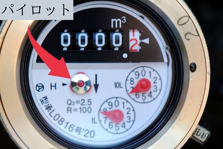 ③水道メーターのパイロットを見る